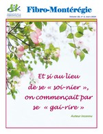 Depuis 2020, le Fibro-Montérégie est passé de 3 à 4 numéros par année. D’une facture positive, visuellement agréable à lire, le bulletin présente des résumés de livres ou de conférences, des témoignages et des informations sur les développements dans le traitement de la fibromyalgie. On présente différentes ressources, parfois non traditionnelles ou moins populaires, parfois déjà connues mais qu’il fait bon de se remémorer, mais surtout se voulant toujours aidantes pour les membres. Il permet d’être au courant des activités de l’Association : cours, conférences, activités sociales, groupes d’entraide ou de soutien, etc. Il s’agit également d’un véhicule dont le conseil d’administration ou l’équipe de travail se sert pour informer ses membres sur ses réalisations, son fonctionnement, ses politiques, ses développements.